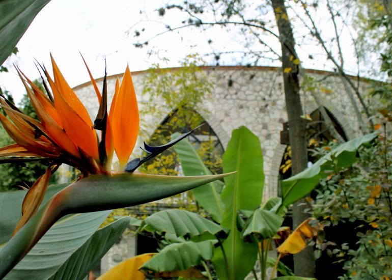 Cuando Gloria comenzó la construcción de la primera villa, La Casa de la Rosa Rosa, pudo notar que los jardines sólo necesitaban algunos retoques para realzar su belleza. Así que la construcción se llevó a cabo alrededor de los árboles y las rocas que ya estaban allí.